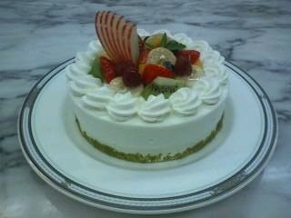・フルーツはケーキをカットした時に美しく見えるように中央をあけて、放射状に並べる。